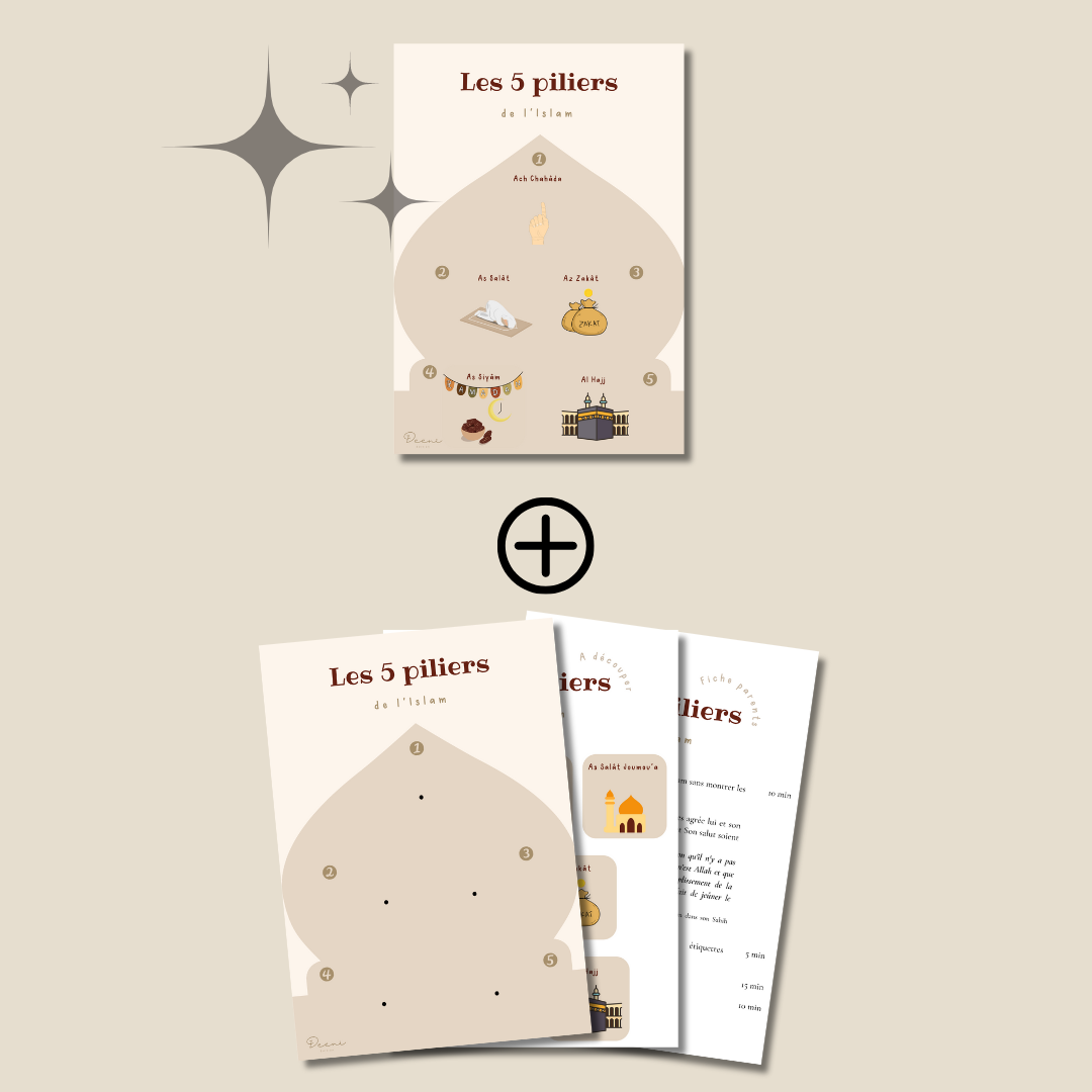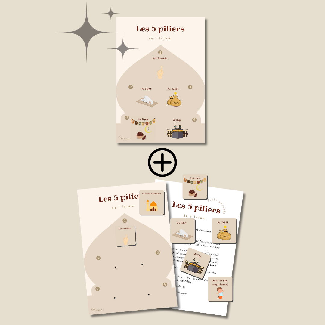 Deeni vous propose une affiche qui permettra à vos enfants d'apprendre les 5 piliers de l'Islam.