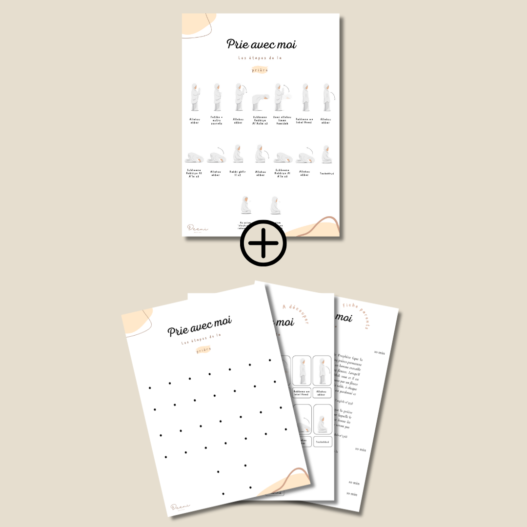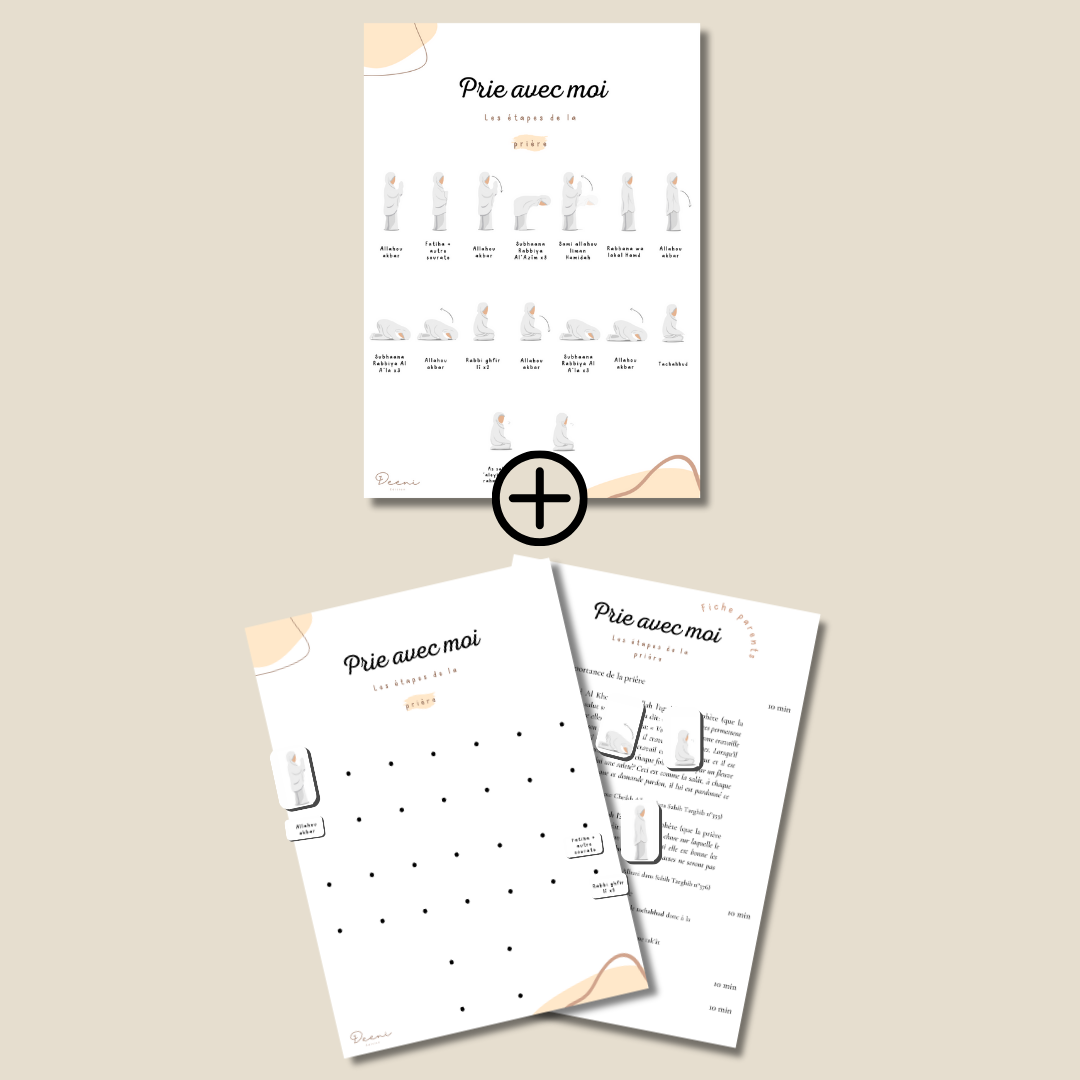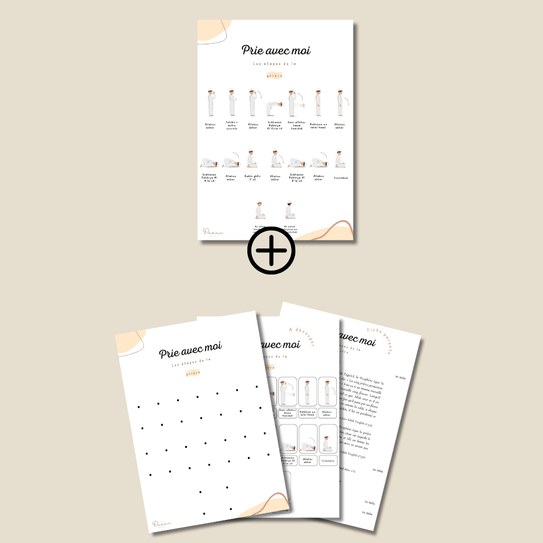 Deeni vous propose une affiche qui permettra à vos enfants d'apprendre le déroulement de la prière étape par étape.