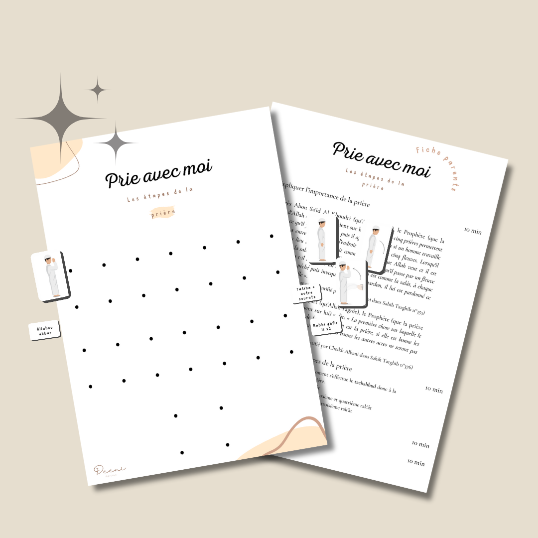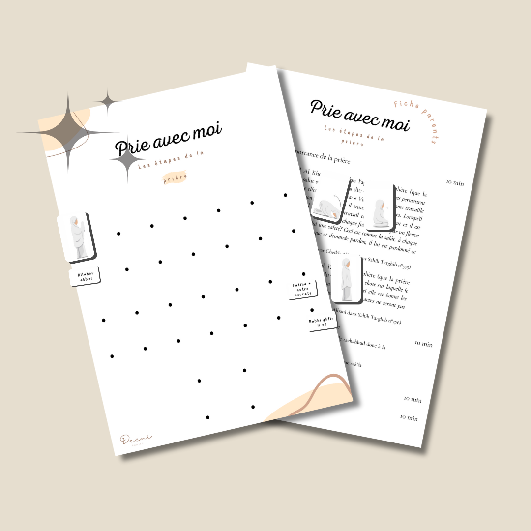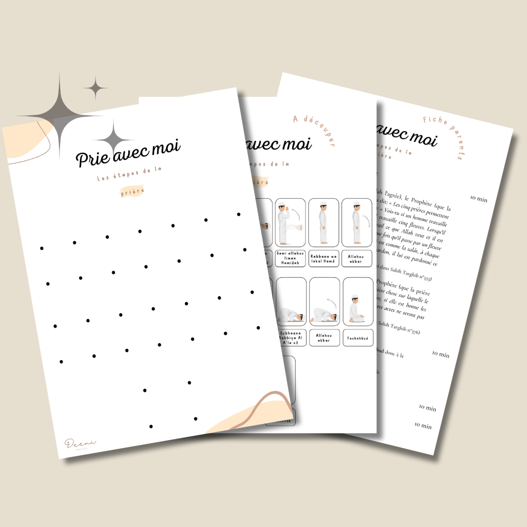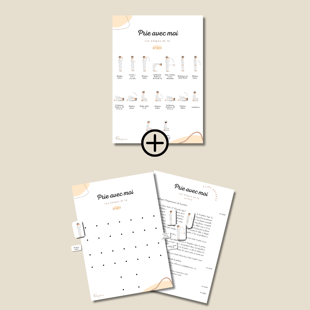 Deeni vous propose une affiche qui permettra à vos enfants d'apprendre le déroulement de la prière étape par étape.